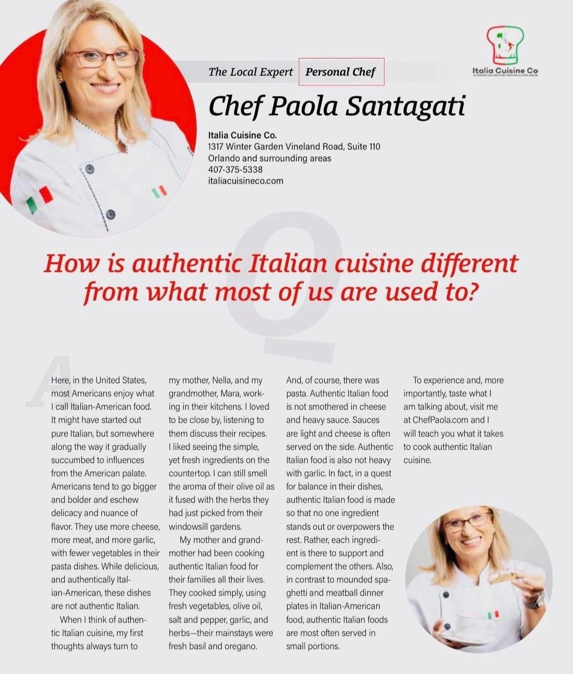 Vacation home meals are your secret to maximizing holiday fun. Everyone else is relaxing - you should leave the stove and join them. Hire a personal Italian chef in Orlando and Windermere, Florida for private dinners. Chef Paola is licensed and insured and has over 20 years of cooking experience.
